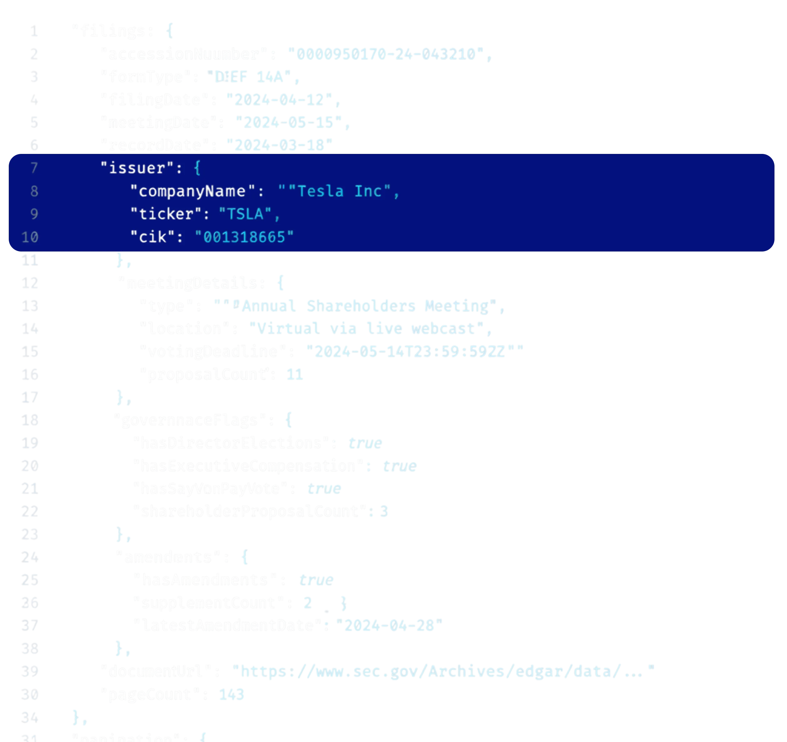 Access structured proxy statements with clean metadata and reliable coverage for governance, compliance, and shareholder analysis.